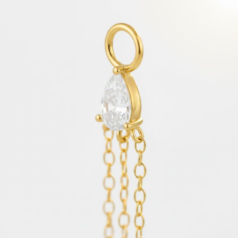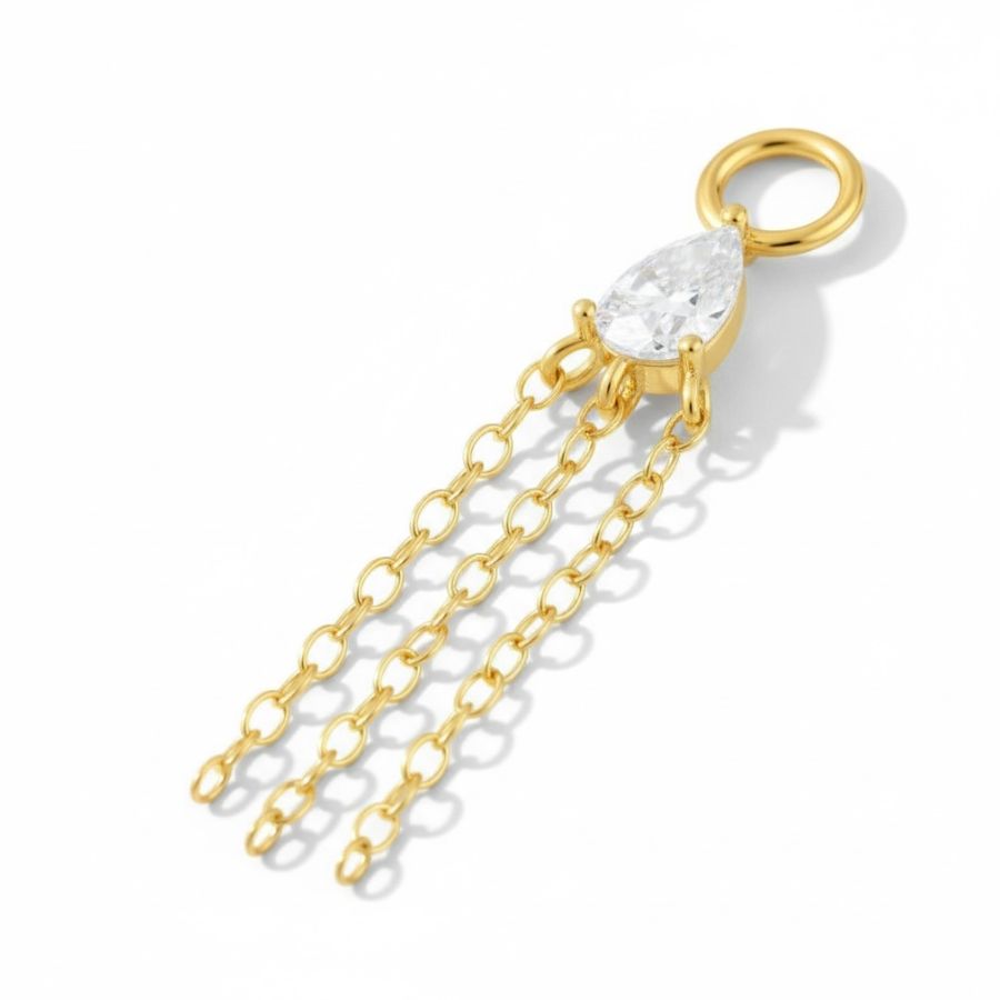 Charm Fila - avec son strass en zircon central et ses 3 chaînettes pendantes. Ce mini pendentif pour boucle se porte aussi bien sur vos créoles que derrière l'attache de vos puces d'oreilles
