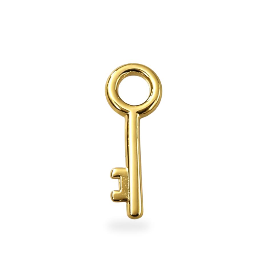 Mini clé dorée au dessin épuré, le charm KEY est symbole d’audace et de nouveaux départs. Fini poli pour un éclat discret, à porter seul ou mixé à tes créoles et charms pour signer ton ear stack.