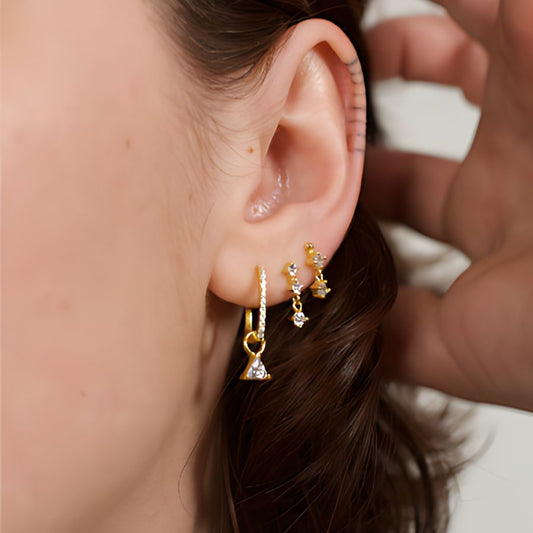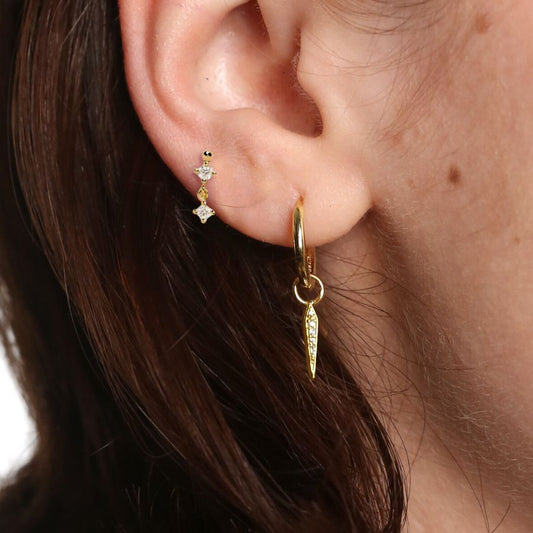 - Boucle d'oreille incrustée de zircons et d'une petite pierre suspendue