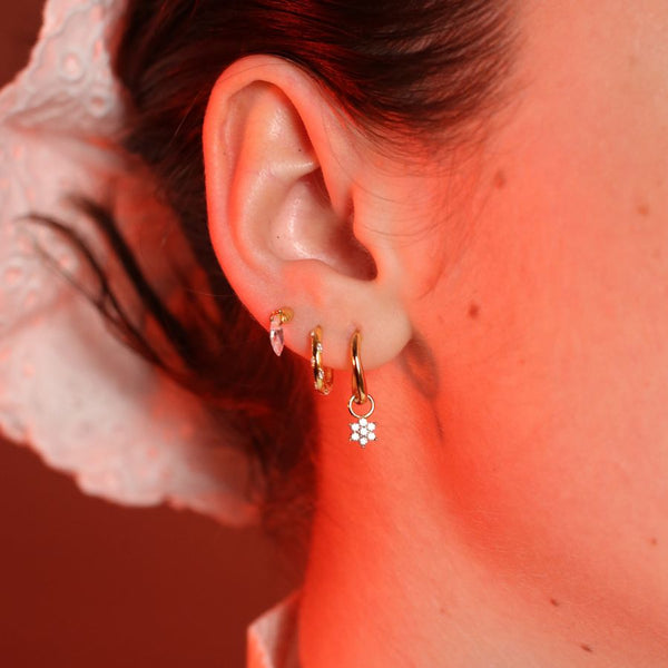 Grâce à leur système de fermeture à clip, ces mini créoles ne se détachent pas et s’avèrent très légères à porter.