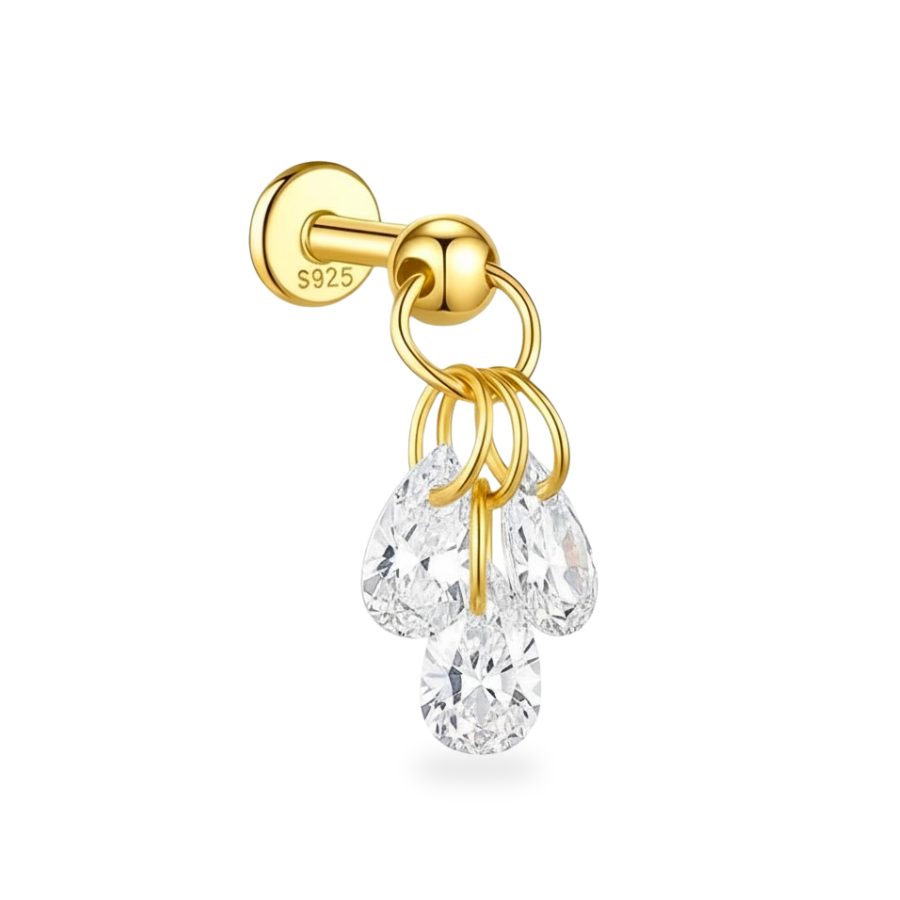 Rainy, notre nouveau piercing qui saura parfaitement épouser la forme de votre oreille en apportant mouvement et brillant.