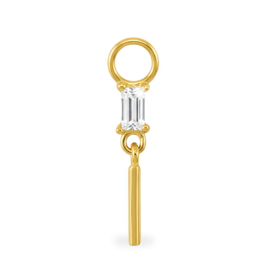 Charm Lina - conçu en deux parties indissociables, agrémenté d'un zircon rectangulaire et d'une fine tige doré suspendue.