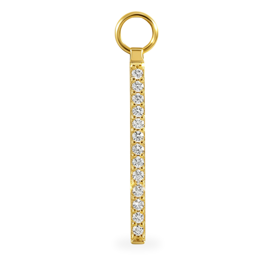 Ce mini pendentif nommé "Longo" est comme son nom l'indique tout en longueur et apporte à la fois équilibre et légèreté à votre boucle d'oreille. Le pendentif se présente sous forme d'une ligne finement incrusté de zircons dans sa longueur, il est est réalisé en argent 925 haut de gamme plaqué or jaune.